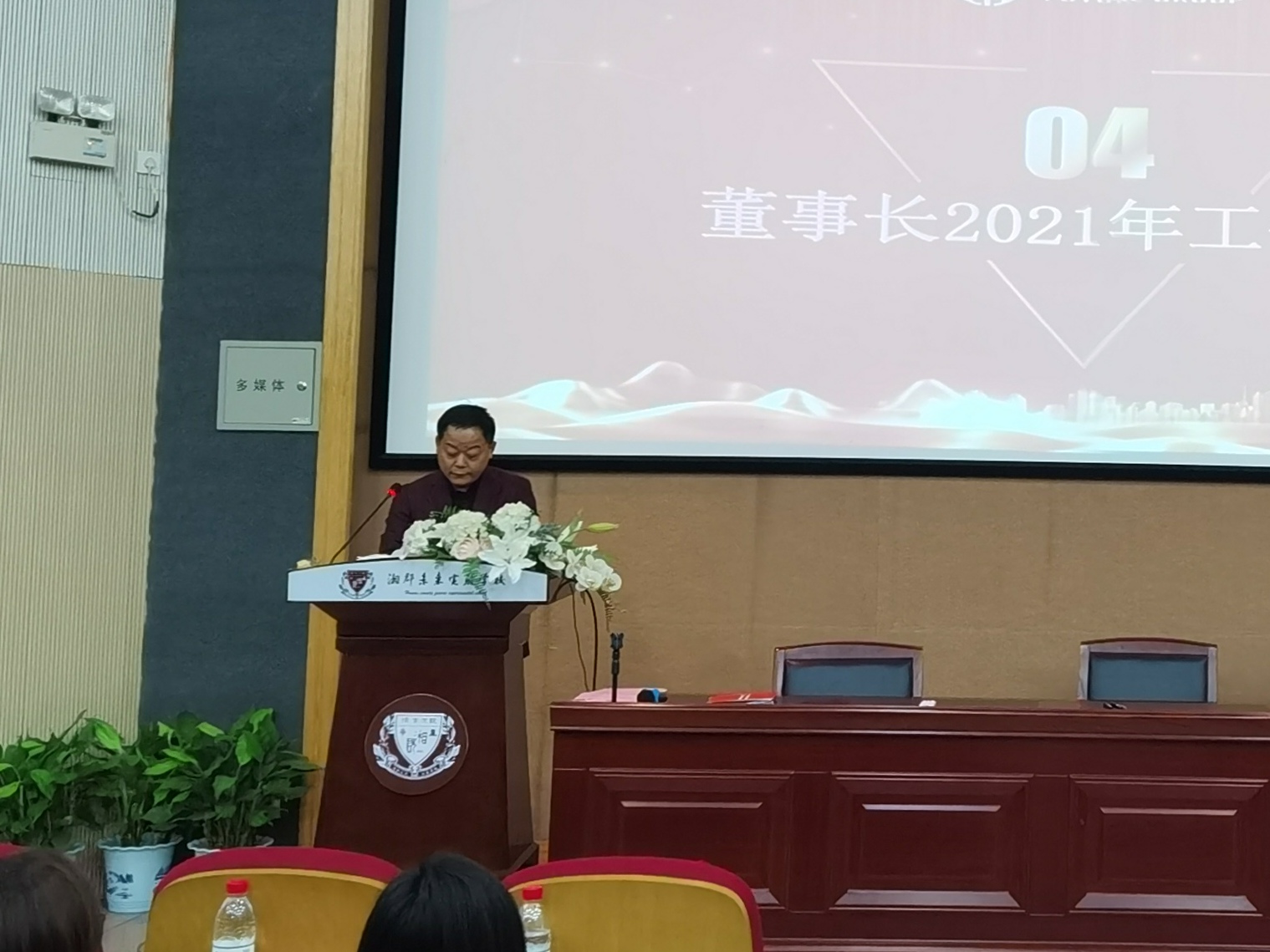 最后,集团董事长做重要讲话。董事长充分肯定了各分子公司、各中心一年来的各项工作成绩,对所有未来人的辛苦付出表示衷心的感谢。董事长指出,2020年虽受疫情影响但在逆境中实现突破,取得了佳绩,创造了奇迹,全面完成全年目标任务。2021年,我们要紧紧围绕集团“一核两翼”的发展战略,即教育、商业、地产三大板块,加快推进产业结构调整,把产业转型升级作为转变经营发展方式的战略重点,按照筑牢基础,发挥优势,整合资源,强强联合的发展方向,调整经营思路,创新经营模式,保证集团经营活动平稳健康发展,促进经济实力不断迈上新台阶。