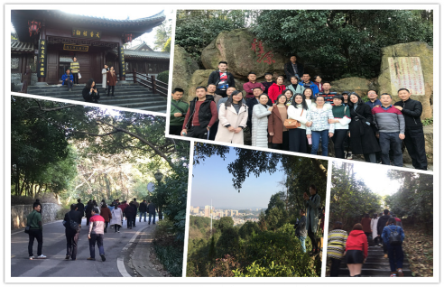 初冬时节的一路沿途风景已是分为妖娆;直达位于咸宁市中心的潜山脚下,爬上山峦叠翠的潜山山顶,漫步在茂密树林搭起的树阴山路,让我们放松了紧张的工作情绪。山下淦河九曲盘桓,烟波袅袅,山顶领略山、城风光,别是一番风味;游览桂花博物馆,山间留下我们集体照,留下这美好的瞬间……